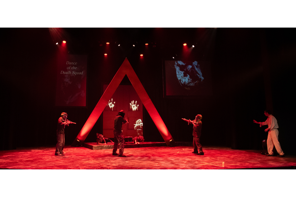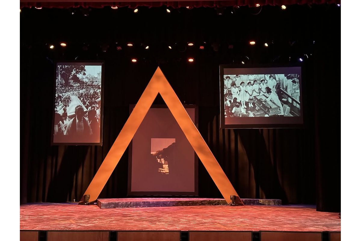 “Romero The Making of a Saint” by playwright Xiomara Cornejo. (Directed by David Crespy) Projection design: Cherie Samspon. The play tells the story of Archbishop Oscar Romero, the Catholic priest of El Salvador (canonized in 2018) who advocated for the liberation of the poor and oppressed in the Civil War. Sampson's projection design included 54 separate short videos, comprised of stills, archival material and original footage shot presented on three simultaneous screens for the 2-hour duration of the play. Rhynsburger Theater, University of Missouri, April 2025.